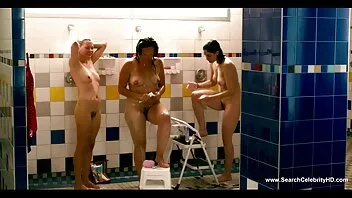 Une fille nue video gay sensuel pisse dans la douche après s'être embrassée dans la salle de bain.